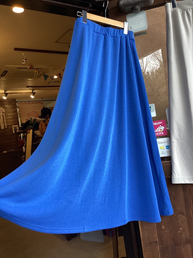 【高身長向け】総丈90cm アルガンオイル加工 裏シャギー スカート 裏起毛 秋冬 ブルー