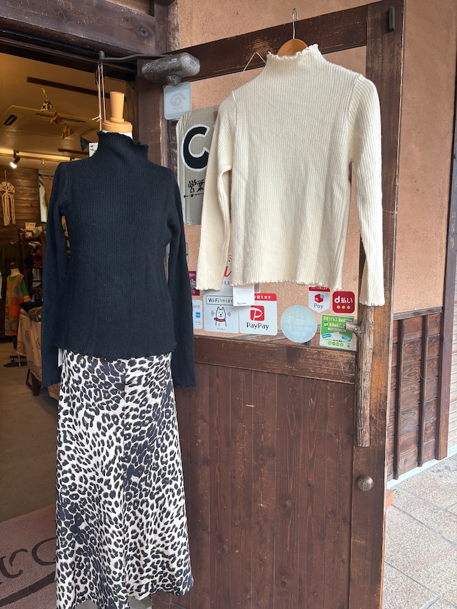 配色ラメボトルネックリブニット