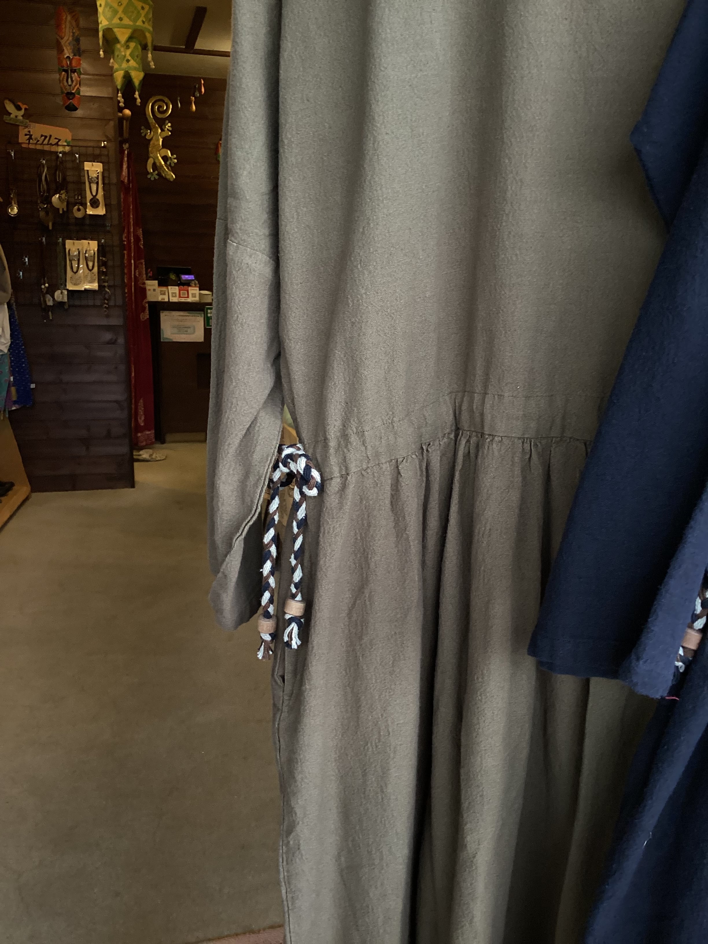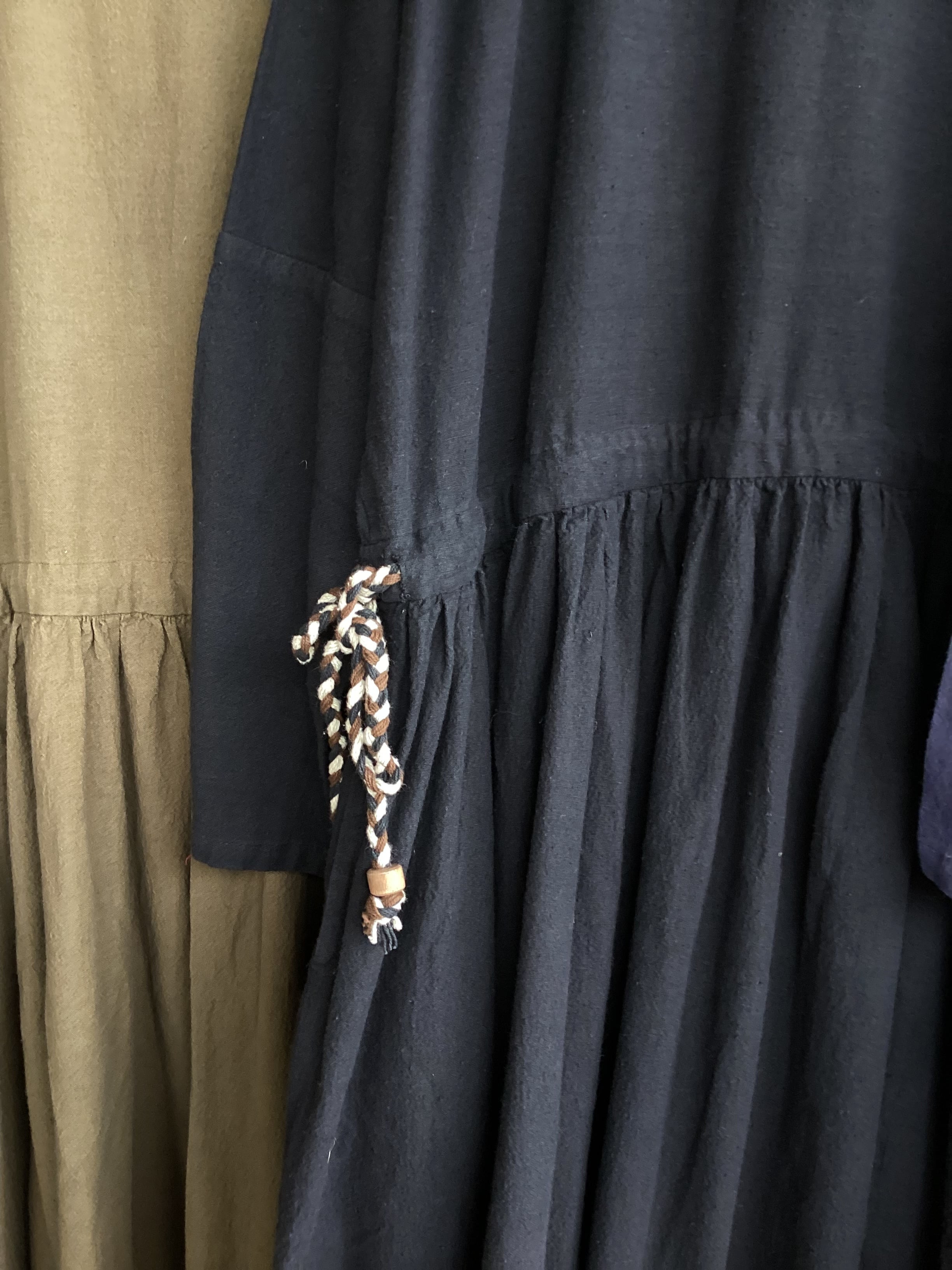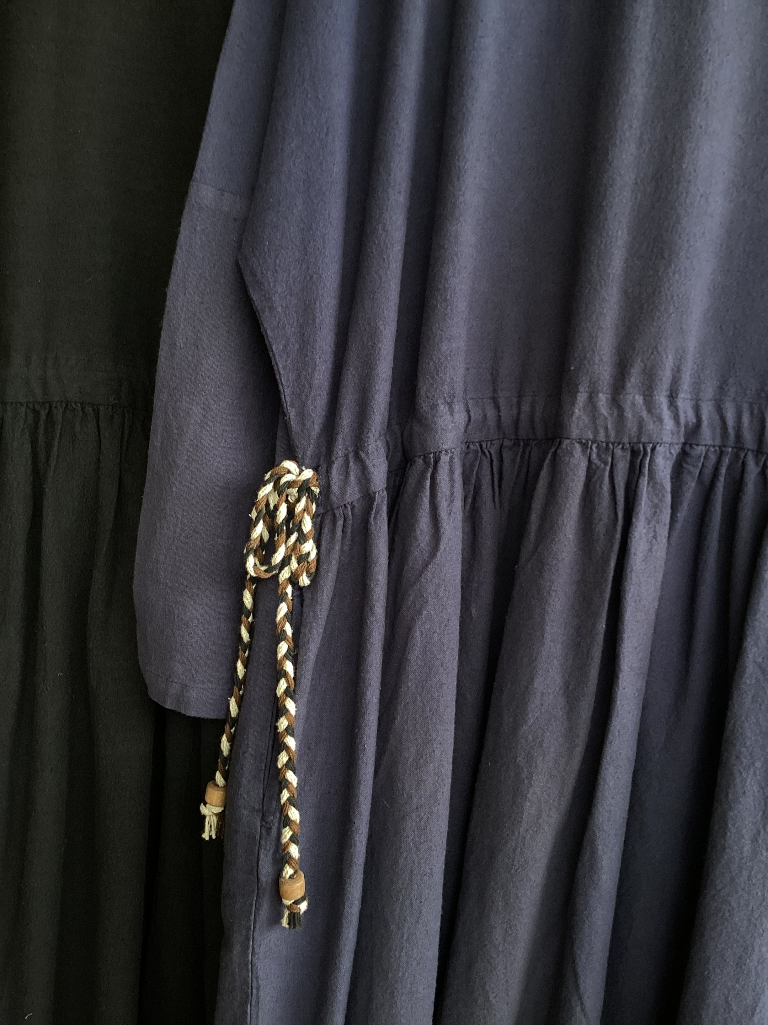 ウエスト紐は絞り調節が可能ですので、お好みでウエストラインを作ることもできます。